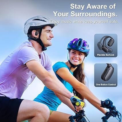 • Open Ear Design – The wireless bluetooth earbuds feature with open ear design. The earbuds do not go into your ears. No fear of ear fatigue and infections. Soft and flexible earhooks bring you ultimate ear comfort. You can stay aware of the surroundings when listening to music, more secure for your daily use.